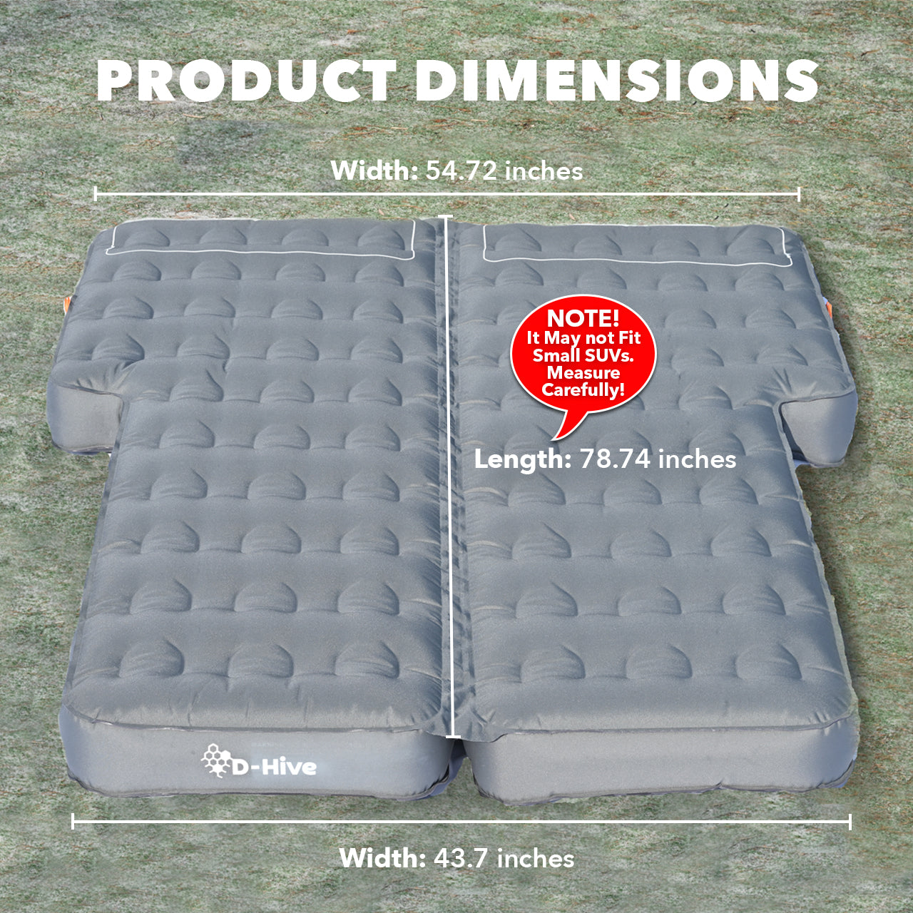 - VERSATILE: features two joined air chambers, each with its own port. Inflate both sides for a full-size bed car or just one for solo camping. Fits campers up to 6’2” tall on any suv mattress, car mattresses for back suv, or car air mattress suv.